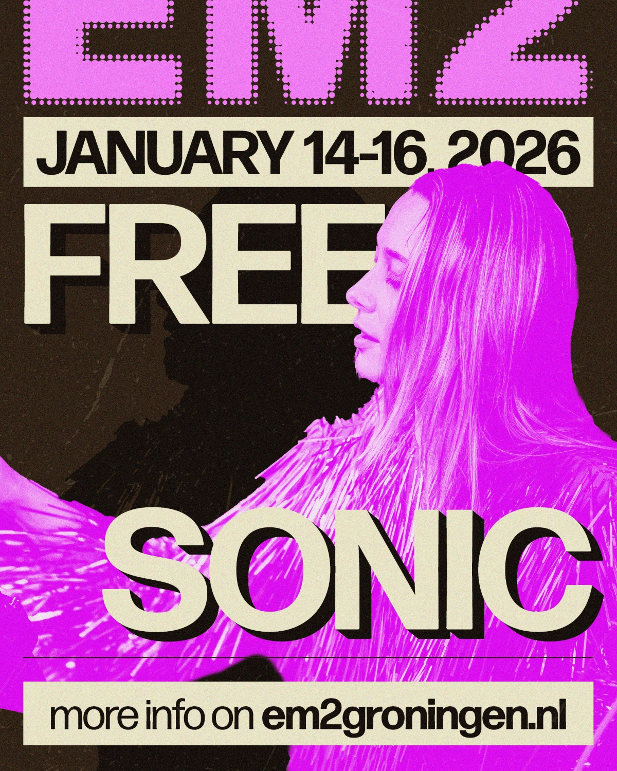 Na een succesvolle eerste editie in 2025 gooit EM2 haar deuren ook in ’26 weer open tijdens Eurosonic Noorderslag op 14, 15 & 16 januari met FreeSonic, een free-for-all programmering tot in de late uurtjes, bomvol talent in de coziest venue in town!